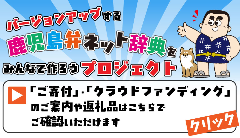 この鹿児島弁ネット辞典は、下記の出典(文献・ネット)をもとに鹿児島方言文化協会(鹿児島弁検定協会、鹿児島方言研究会など)が鹿児島弁の意味や語源、音声用例を楽しいマンガ・イラストを使って解説しています。
